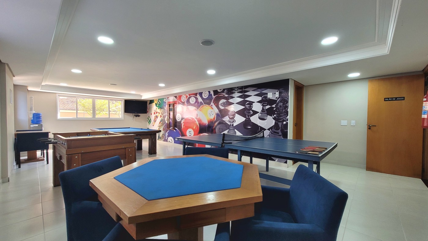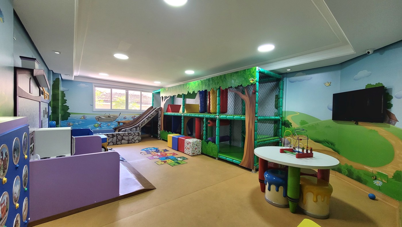 O condomínio é completo, piscinas adulto e infantil, spa, academia, sala de cinema, quadra poliesportiva, salão de festas, salão de jogos, playground, brinquedoteca, portaria 24 horas.