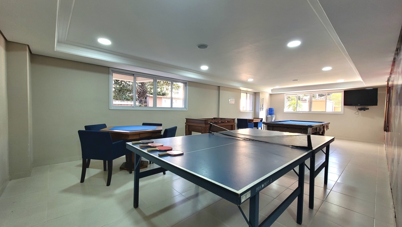 O condomínio é completo, piscinas adulto e infantil, spa, academia, sala de cinema, quadra poliesportiva, salão de festas, salão de jogos, playground, brinquedoteca, portaria 24 horas.