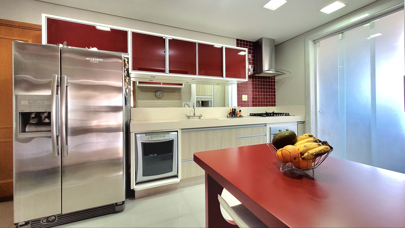 O apartamento ficará com todos os eletrodomésticos da cozinha (refrigerador, cooktop, coifa, forno,lava-louças), sala de jantar, cadeiras, aparador, home da sala, planejados.