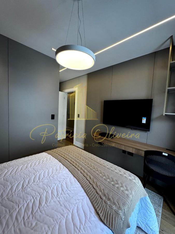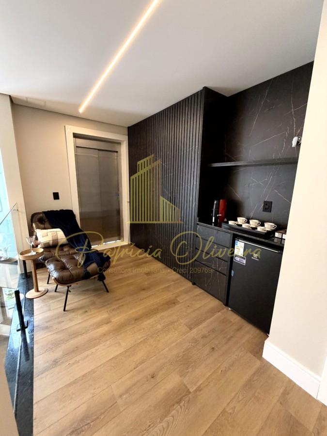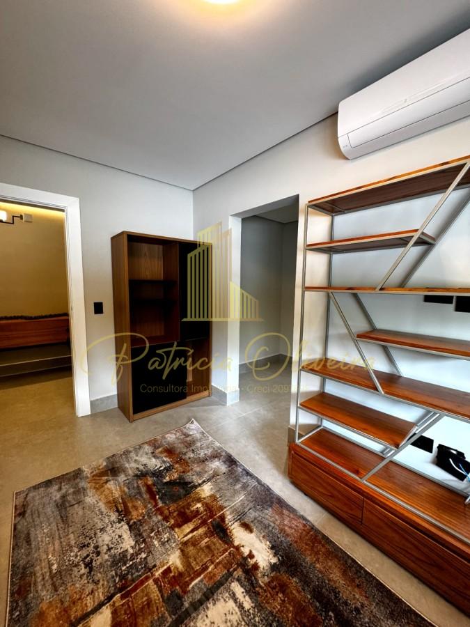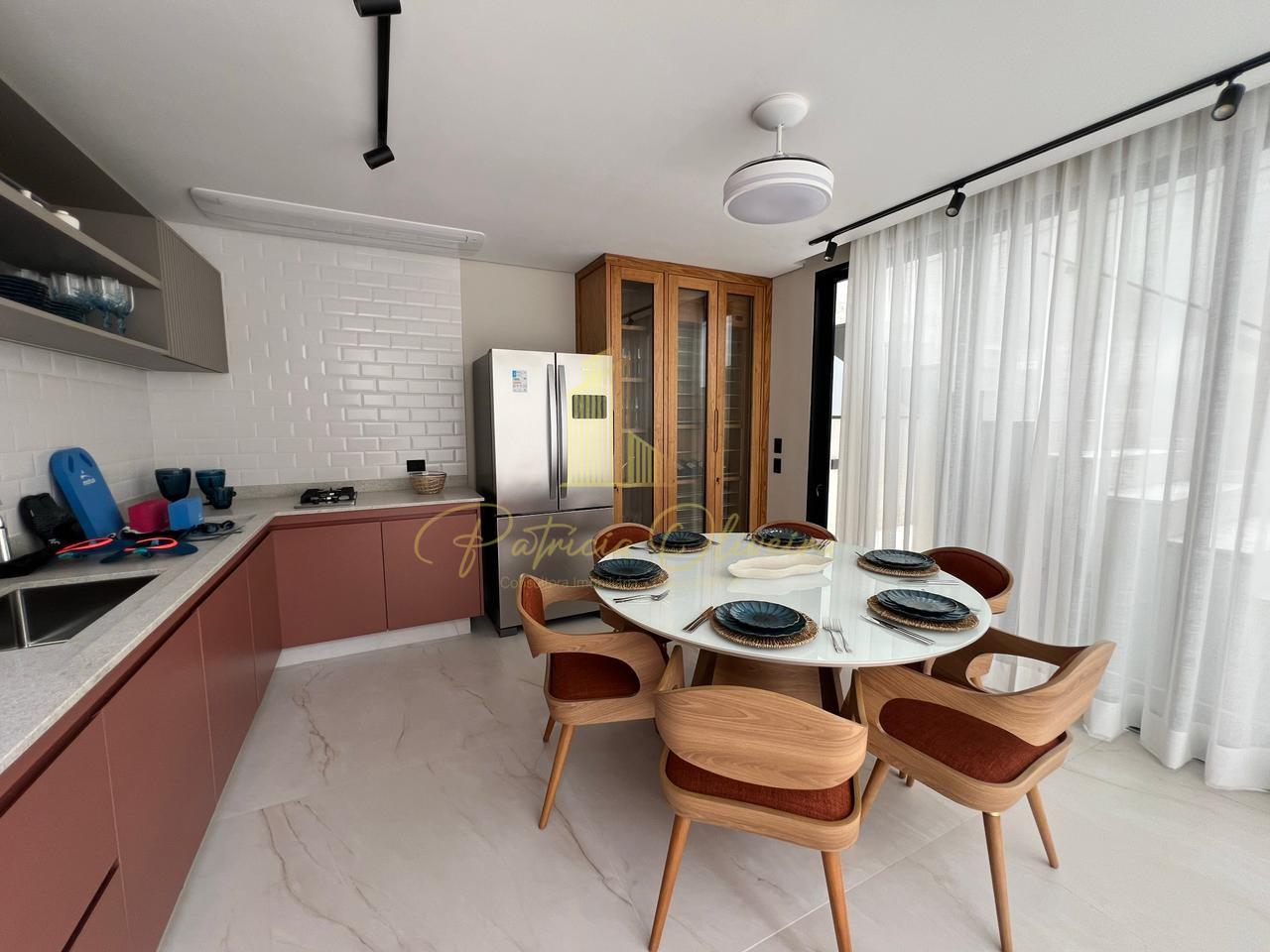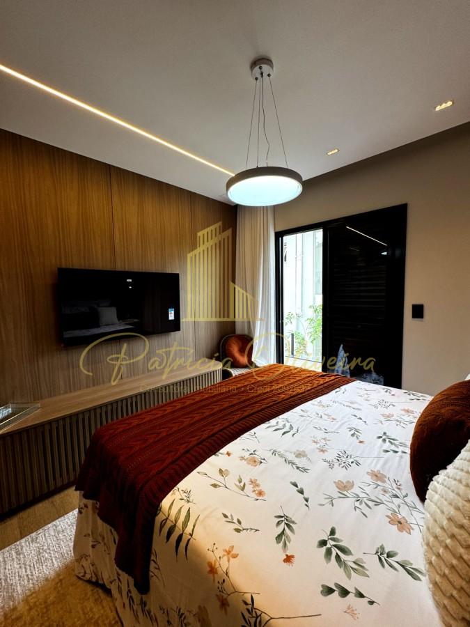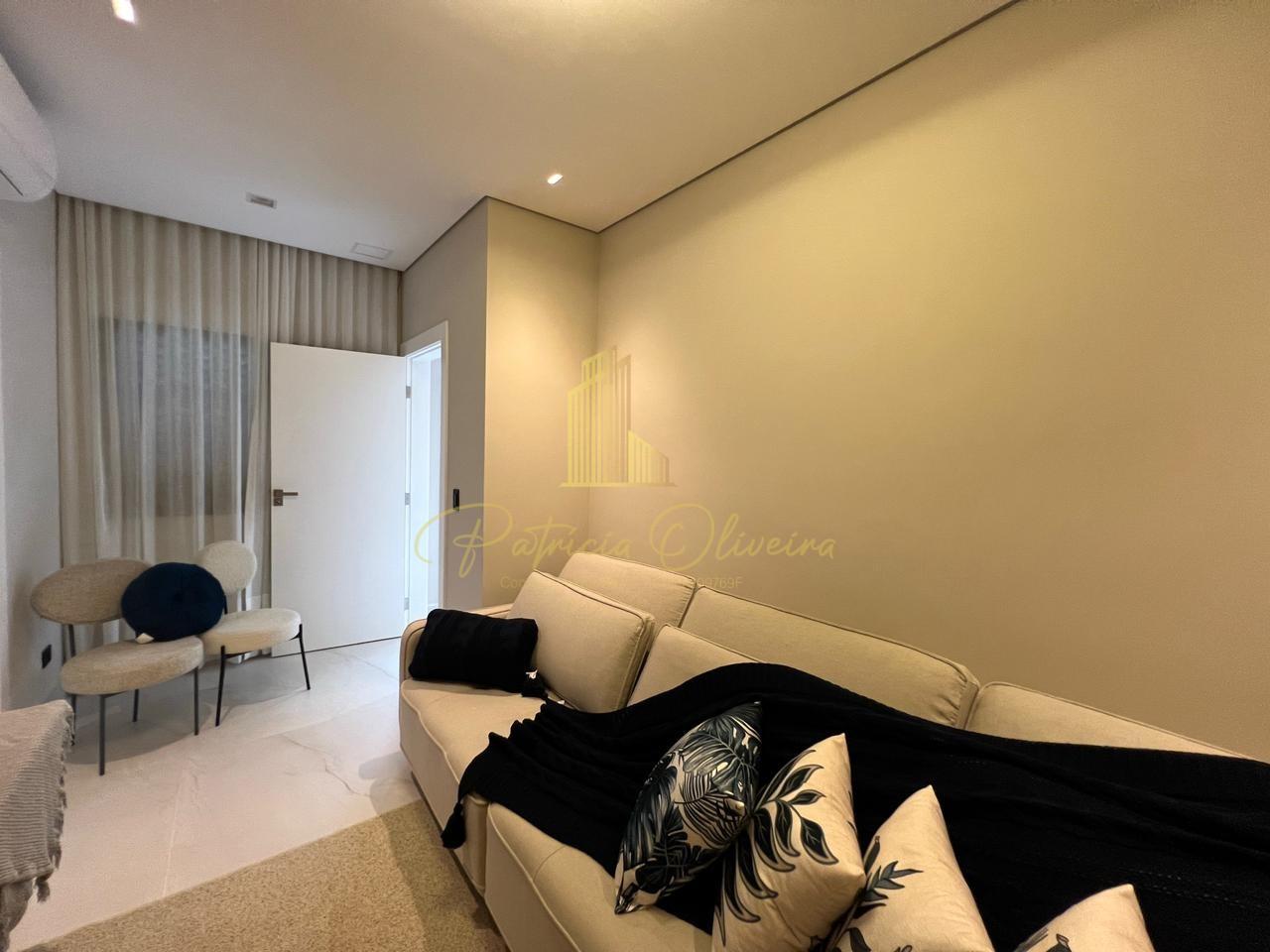 O living integrado à cozinha, sala de cinema (TV 82), escritório privativa, adega climatizada, além do espaço gourmet conectado à piscina aquecida.