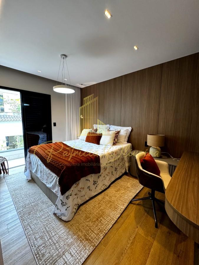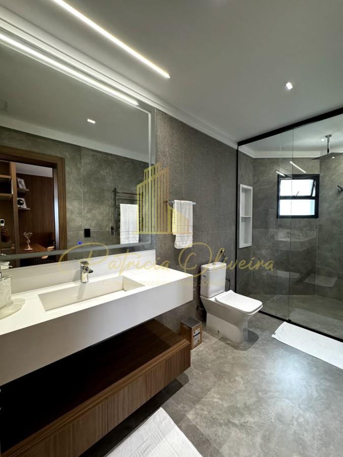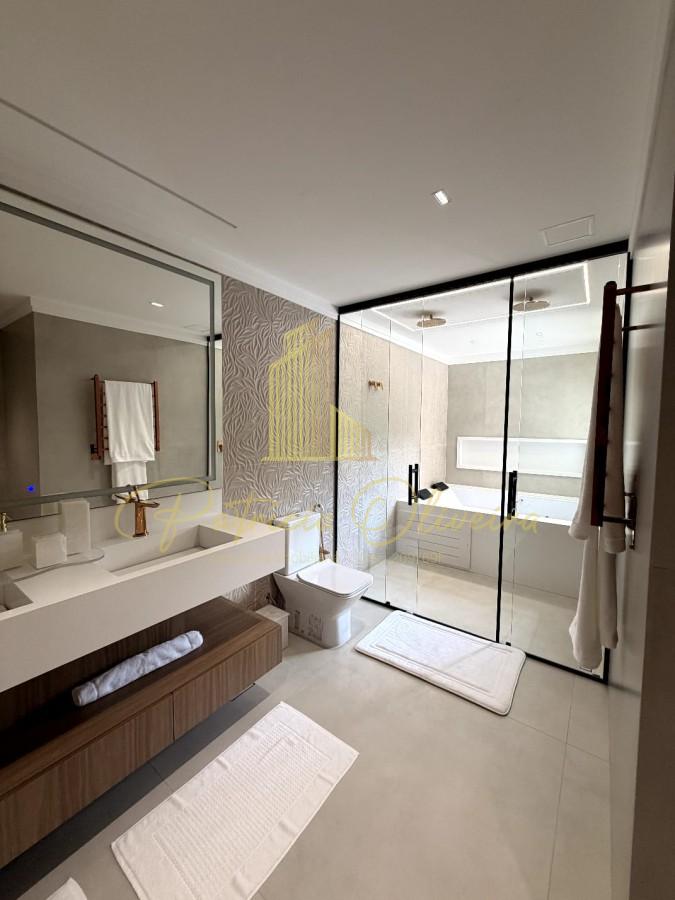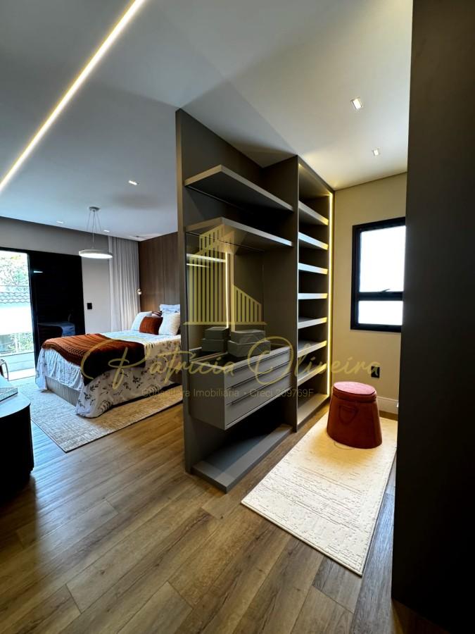 A mansão possui 420m² de área construída, composta por 05 suítes, sendo 04 suítes no andar superior já com closet. A suíte master com sistema de aquecimento no piso, hidromassagem e vista para o lago.
