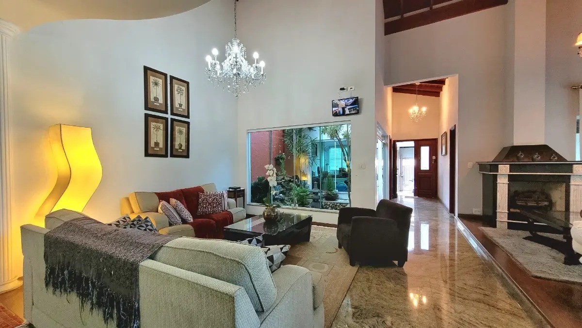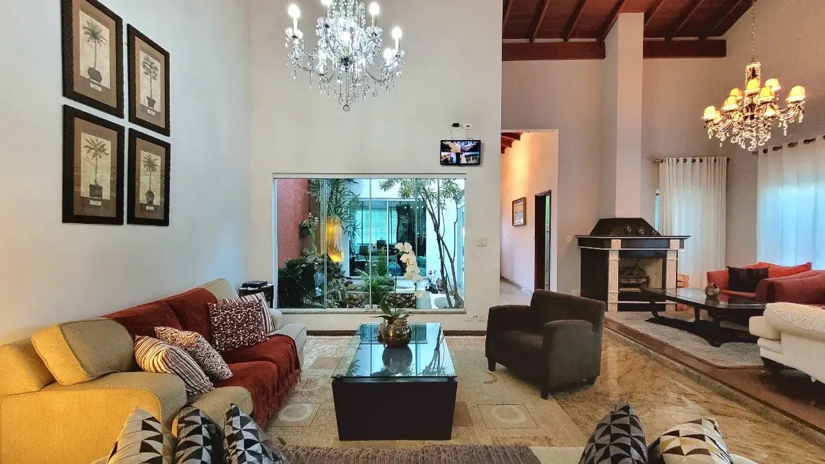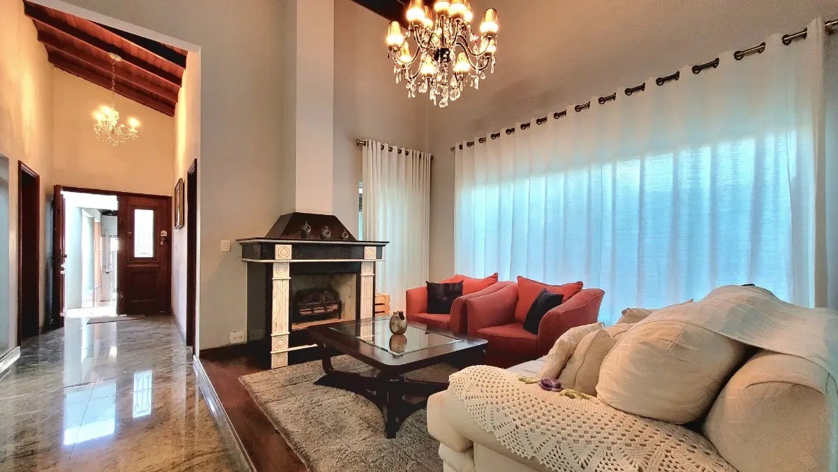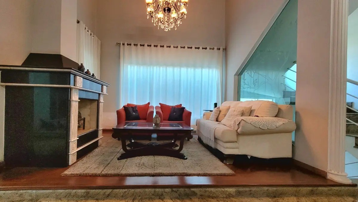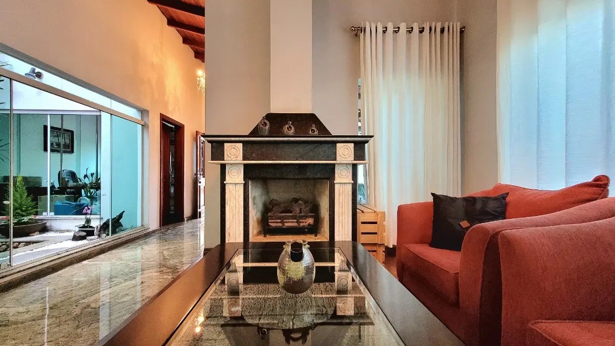 A sala de estar é perfeita para momentos relaxantes e, nos dias mais frios, você pode desfrutar de um ambiente aconchegante com a lareira.