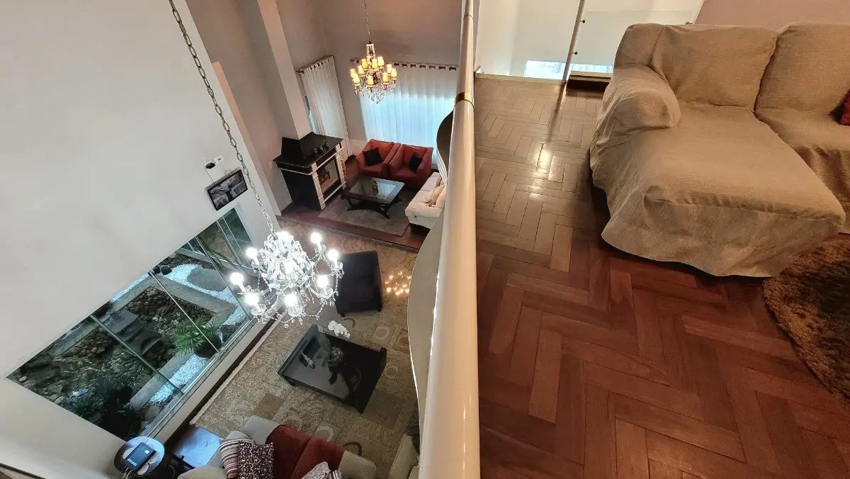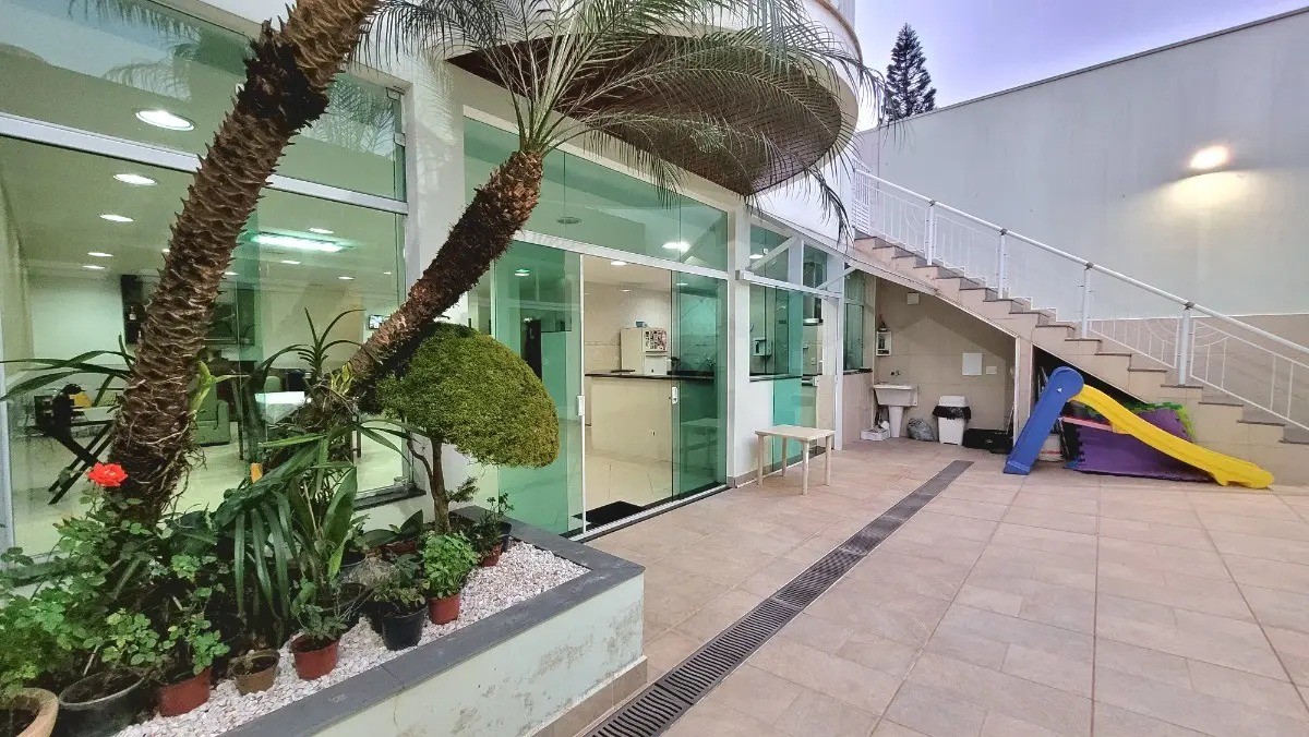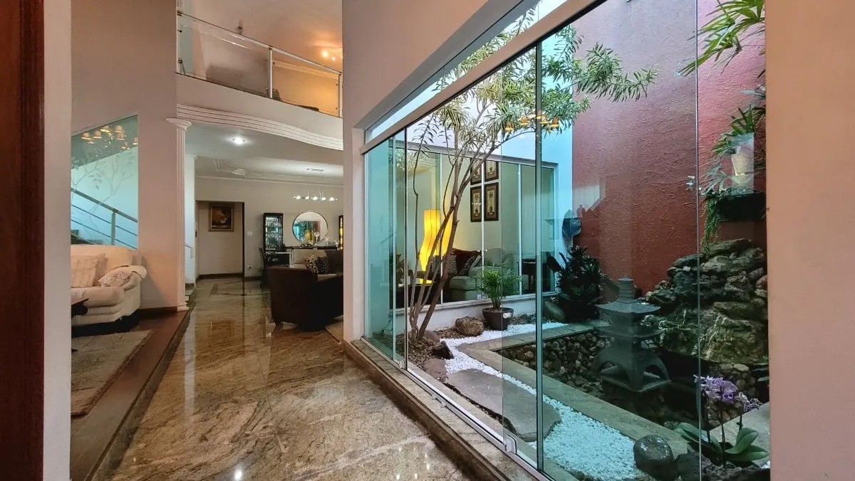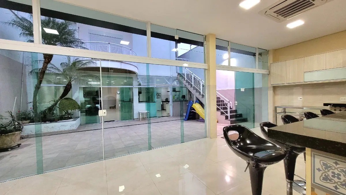 Apresento-lhe o sobrado no encantador bairro Santa Maria. Uma residência que combina design contemporâneo e sofisticado com conforto. Ao abrir a porta, você é recebido por um jardim de inverno com um lago sereno, habitado por carpas coloridas, evocando tranquilidade e conexão com a natureza.