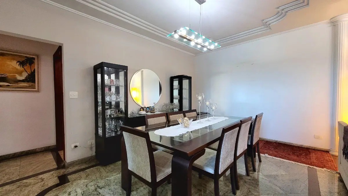 Ao caminhar, uma ampla sala living que se conecta harmoniosamente a uma elegante sala de jantar.